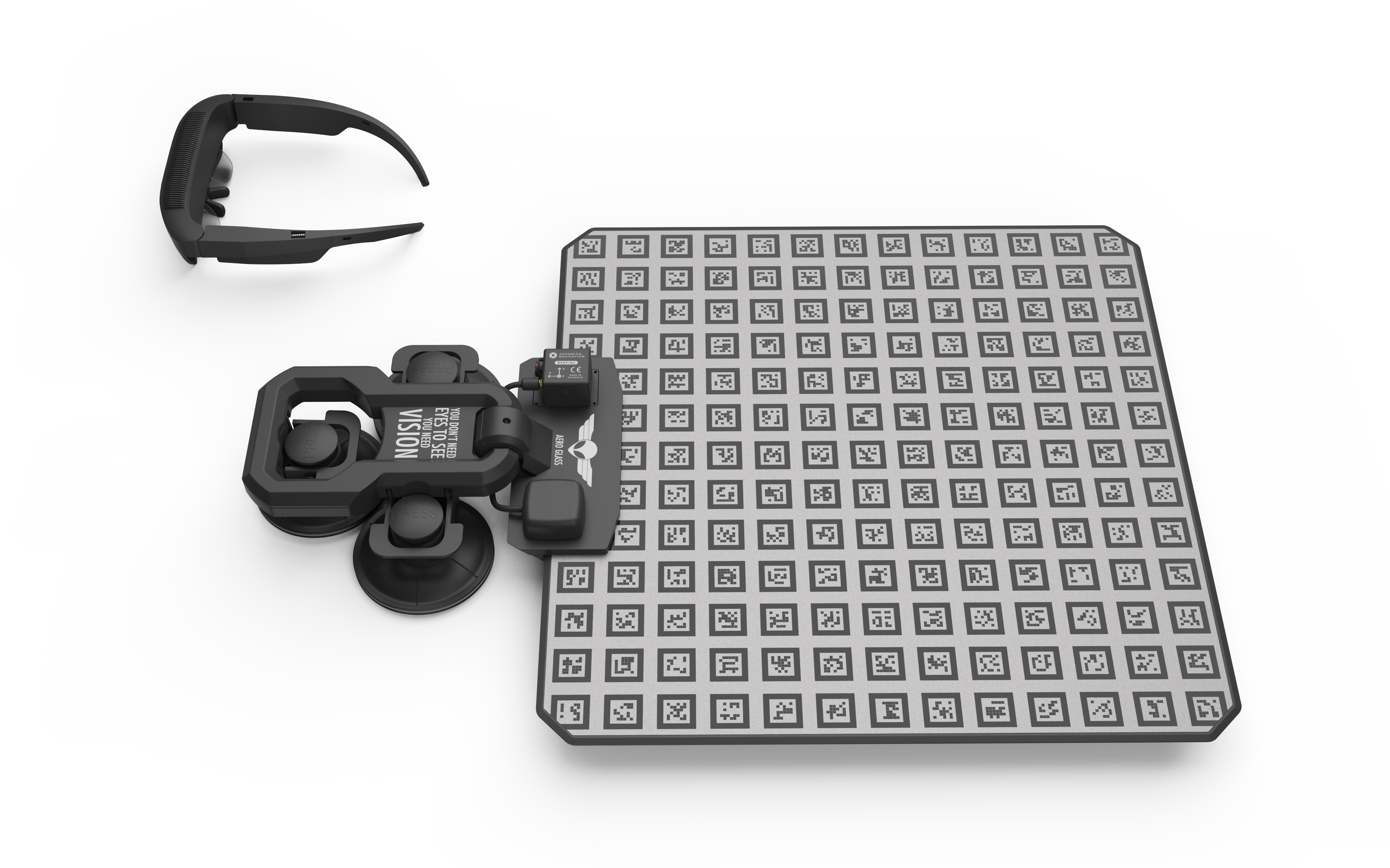 The MarkerBoard's no.1 requirement was its high rigidity: markers on the board has to be kept 100% flat and still even at 3G vibration and at drastic air pressure decrease. On the other hand the MarkerBoard cannot be fixed permanently to the cockpit because of certification constraints. The Head Tracking Kit has to be fully portable and easy to frequently install and remove in any type of aircraft as most users rather rent than own his aircraft. MarkerBoard must fit into booth classic (Cessna style) and modern (full plexiglass) cockpits. Markers are lit with IR light and read with IR cameras, therefore special light reflecting material was used for the marker layer to enhance camera tracking.