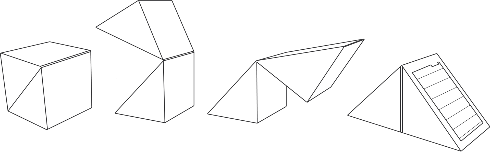 If you put out the box along its diagonal, you get 2 triangular part. Each one of the parts can stock 25 sticks. The frames of the box are holding the sticks by their border part. So the 3 in 1 sticks are kept stably in the box even they can be taken out easily. So the opened side of the triangular parts will function as a display and also will serve the sticks.