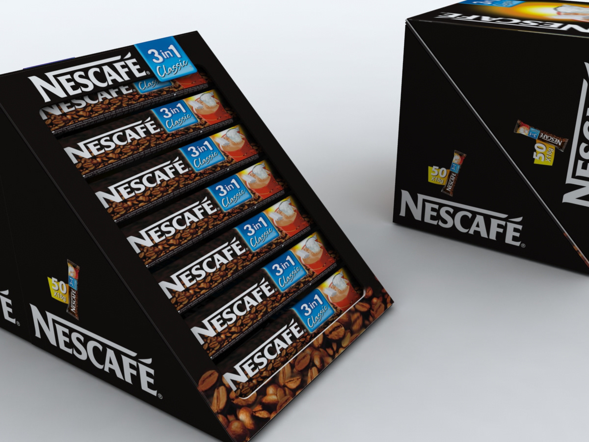 The Brief: Design a new package for 50 pieces of 3in1 Sticks. The package have to be able to ration and serve the sticks. It also have to be able to be placed in the stores next to the counter, or on the table during a meeting, or in the kitchen at home.